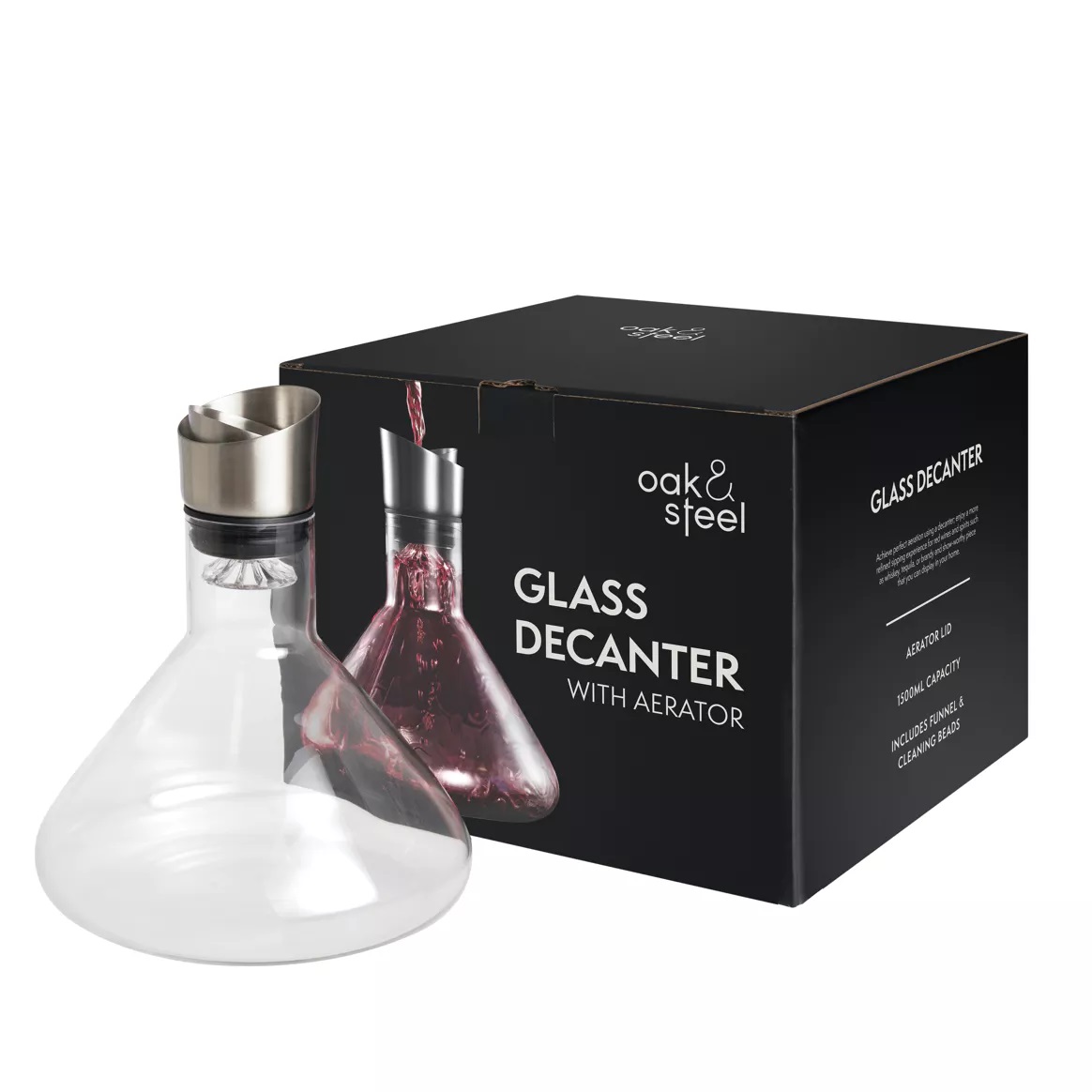 Ci assicuriamo che tu sia perfettamente preparato per prenderti cura del tuo bellissimo decanter con un imbuto e perline per la pulizia in acciaio inossidabile, oltre al nostro utile opuscolo per la cura della vetreria.